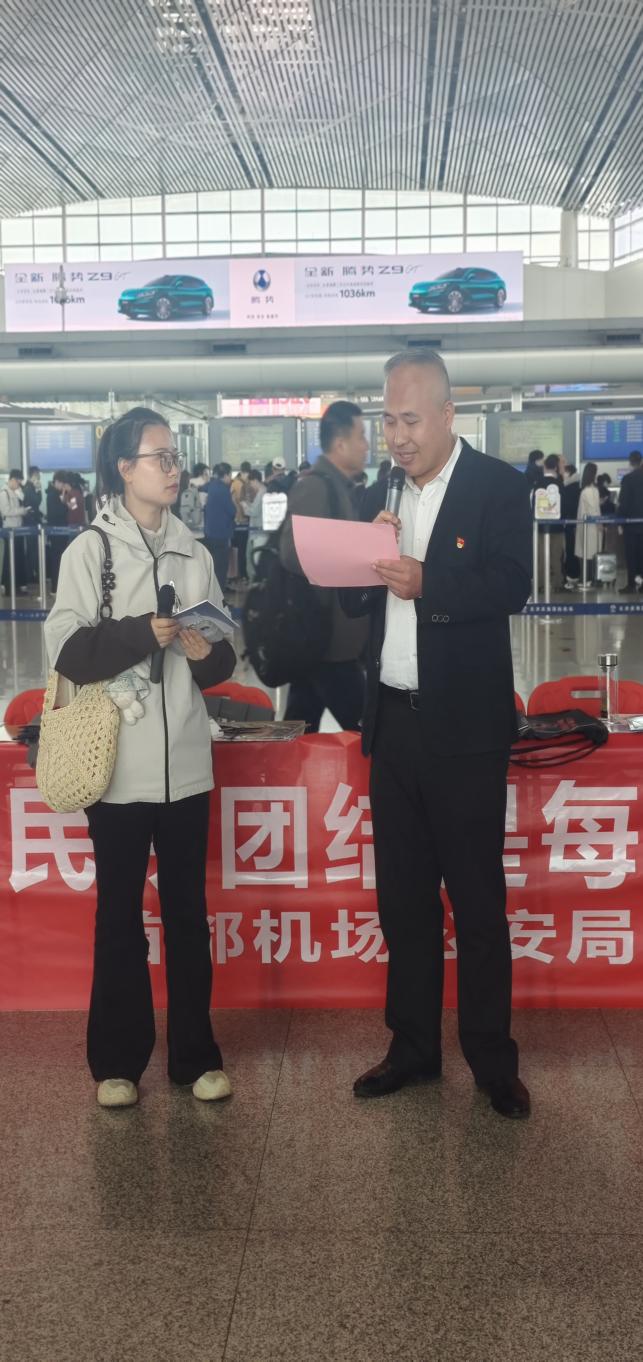 4月15日,在第11个全民国家安全教育日、《中华人民共和国国家安全法》颁布施行11周年之际,新海航天津航空联合天津机场公安分局、天津机场在天津机场T2航站楼及机场全域开展以“统筹发展和安全 护航‘十五五’新征程”为主题的全民国家安全教育日反恐怖宣传教育活动,坚定不移贯彻总体国家安全观,全面提升航空出行安全保障水平与全民反恐防范意识。