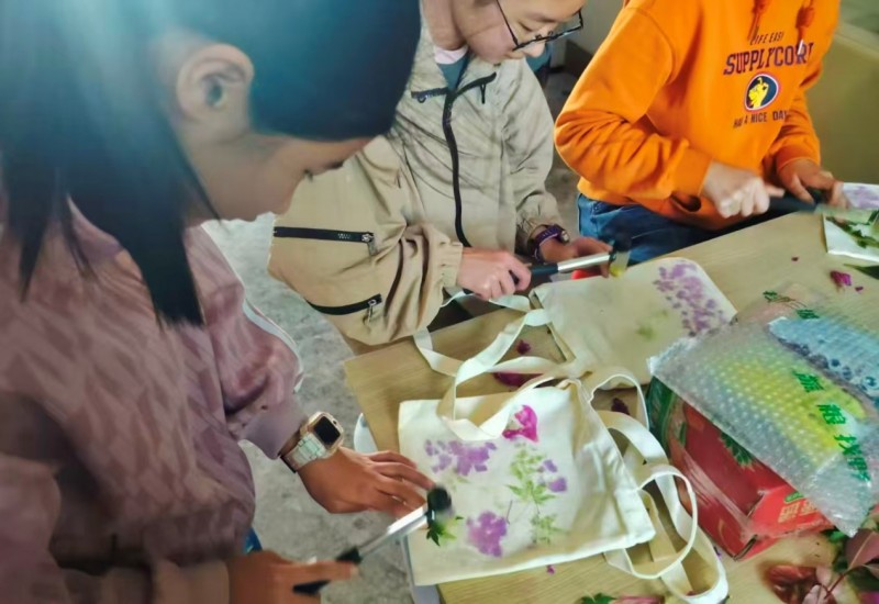 自然植物拓印环节更是成为活动的“人气打卡点”,吸引了众多大小朋友驻足参与。工作人员提前准备好新鲜的花草枝叶、环保颜料、拓印工具等物料,细致讲解拓印的技巧与注意事项,耐心指导每一位参与者如何选取叶片、排布造型、均匀敲拓,让大家在动手实践中感受传统手工的乐趣与自然之美。孩子们小心翼翼地挑选心仪的花草,在家长的陪伴下,轻轻敲击拓印锤,将春日的色彩与枝叶的纹理,永久定格在画纸上,每一笔印记都充满童真与创意,每一件作品都是独一无二的春日纪念。清脆的敲击声、欢快的笑声、温馨的交谈声交织在一起,构成了春日里最动听的旋律。