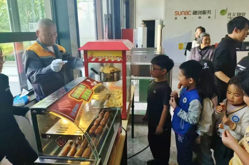 活动现场设置两大特色环节,兼顾趣味与体验,让每一位参与者都能沉浸式感受春日魅力。在春日美味品鉴区,香甜酥脆的爆米花、香气扑鼻的风味烤肠整齐摆放,工作人员有序引导业主免费品尝,一口下去,满满都是春日的甜蜜与烟火气。孩子们踮着脚尖领取美食,大人们则围坐一旁,一边品尝美味,一边闲话家常,邻里间的距离在不经意间悄然拉近。