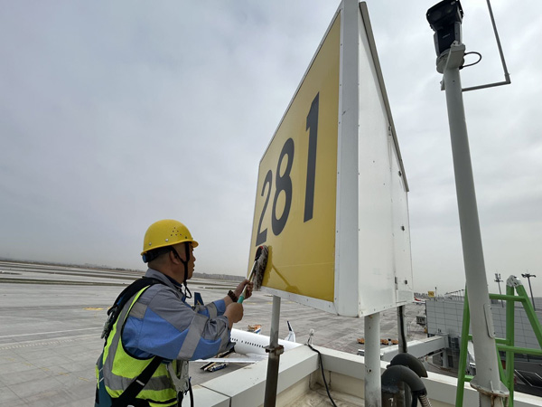 工作开展前,部门周密制定维护方案,严格对照民航飞行区设施运行标准,组织人员对所有廊桥机位标记牌进行拉网式排查,详细登记破损、模糊、松动等问题,建立专项整改台账,明确维护责任、作业流程及时间节点。同时,统筹协调作业时间,精准避开航班运行高峰,充分利用航班间隙时段开展作业,全力保障机场正常运行秩序不受影响。