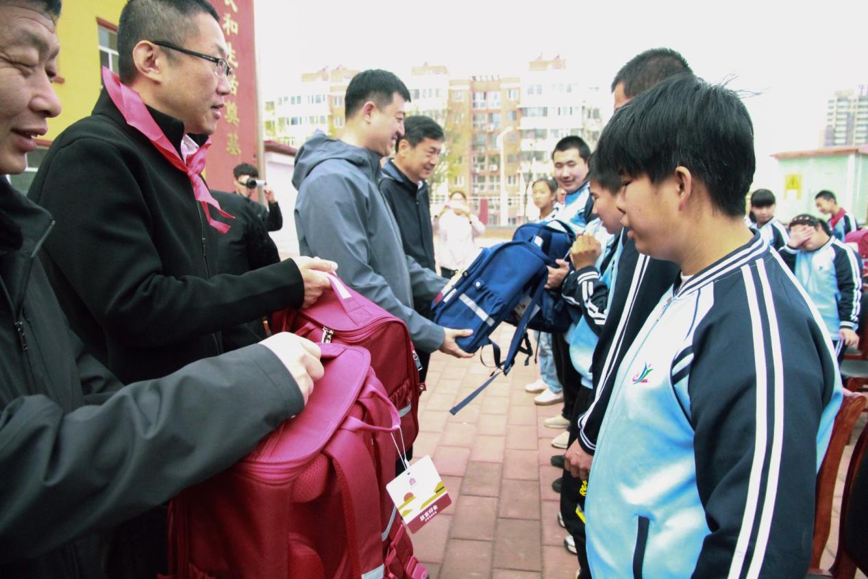 捐赠仪式上,人民创意向滦平县特殊教育学校捐赠精美文具套装及美育绘画工具等学习用品,少先队员代表为嘉宾佩戴红领巾,传递纯真敬意。