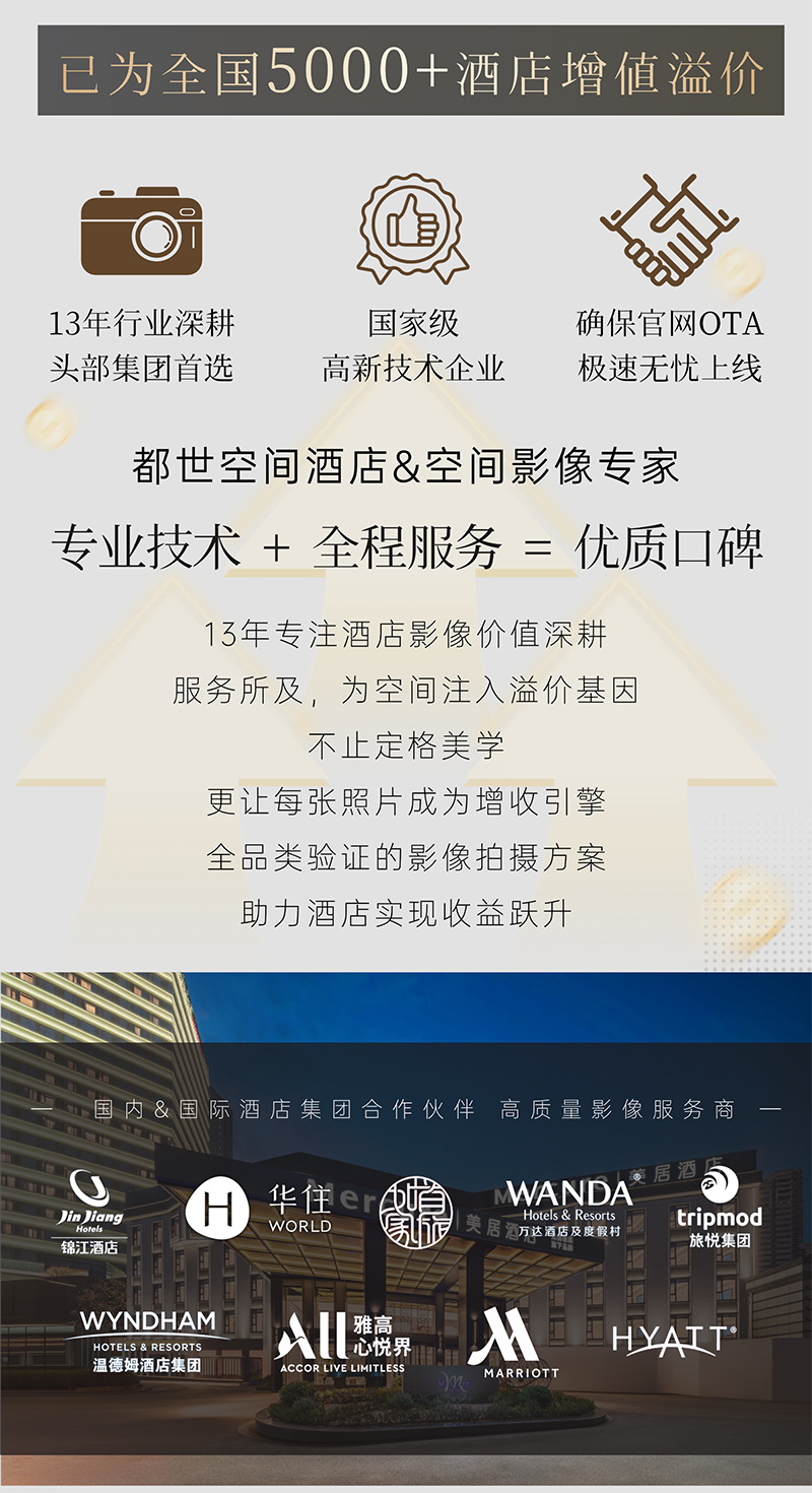 对于酒店业主而言,选择都世空间酒店摄影服务,不仅仅是选择了一家摄影公司,更是选择了一位懂空间、懂审美、懂流量、懂技术的品牌合伙人。